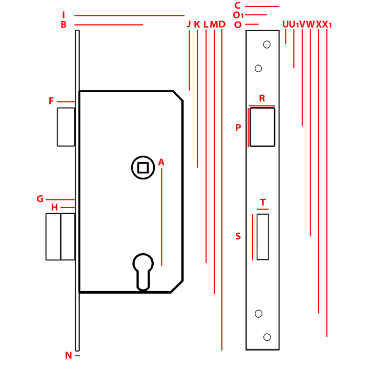 I: 99, B: 63, F: 16,5, G: 27,3, H: 13,8, N: 3, A: 90, J: 53,5, K: 126,5, L: 216,5, M: 246, D: 300, C: 32, O1: 19,9, O: 12,1, U: 11,6, U1: 33,3, V: 88,1, W: 194,2, X: 166,1, X1: 287,6, R: 21,5, P: 34,5, T: 10, S: 43.