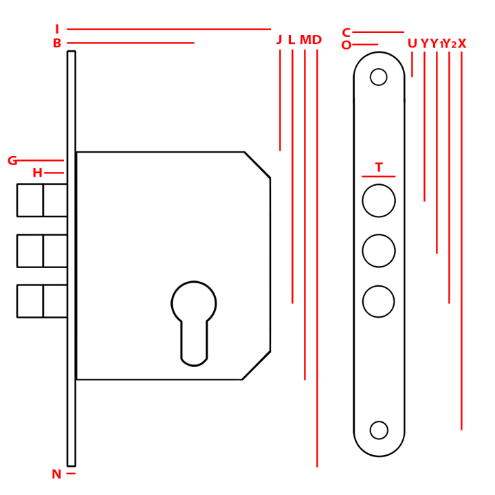 I: 80, B: 50, G: 21, H: 10,5, N: 3, J: 39, L: 101,5, M: 129,5, D: 160, C: 18, O: 9, U: 10, Y: 59, Y1: 79, Y2: 99, X: 150, T: 12.