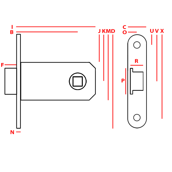 I: 66,5, B: 50, F: 9, N: 3, J: 23,5, K: 40, M: 56,5, D: 80, C: 16, O: 8,U: 8,V: 40, X: 72, R: 11, P: 22.